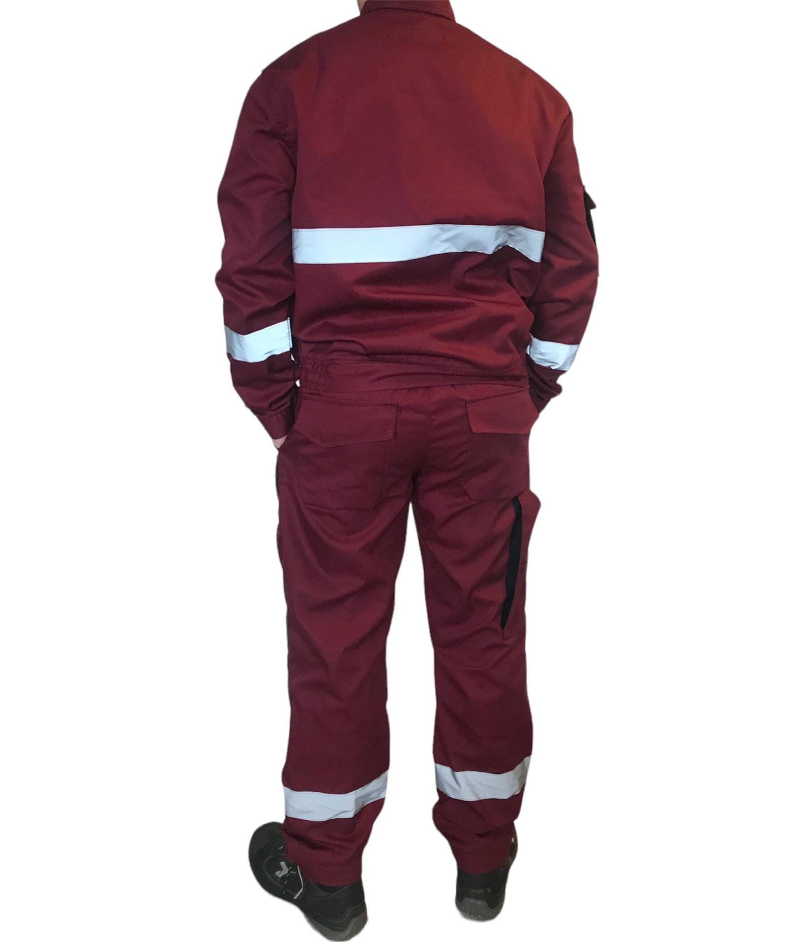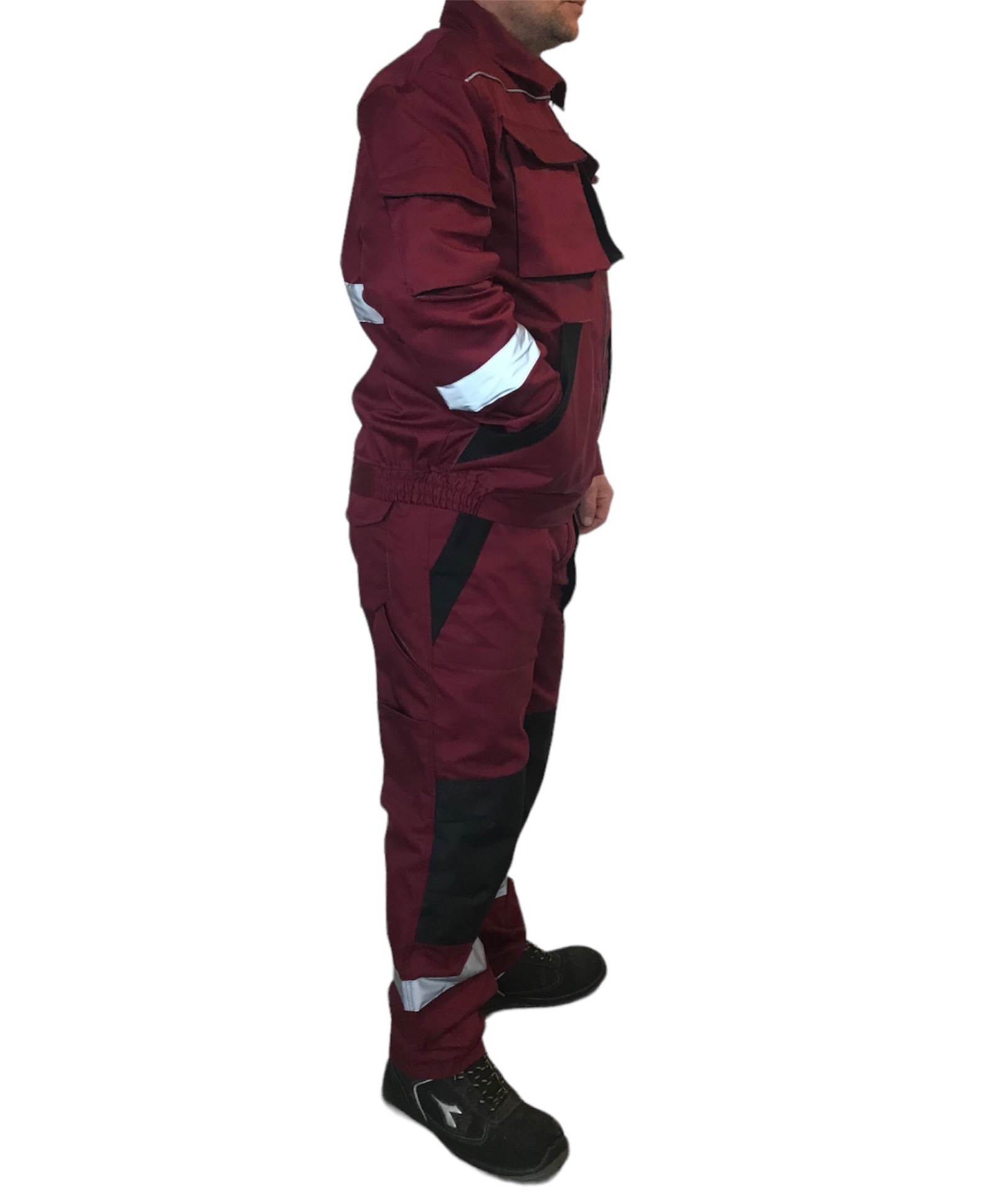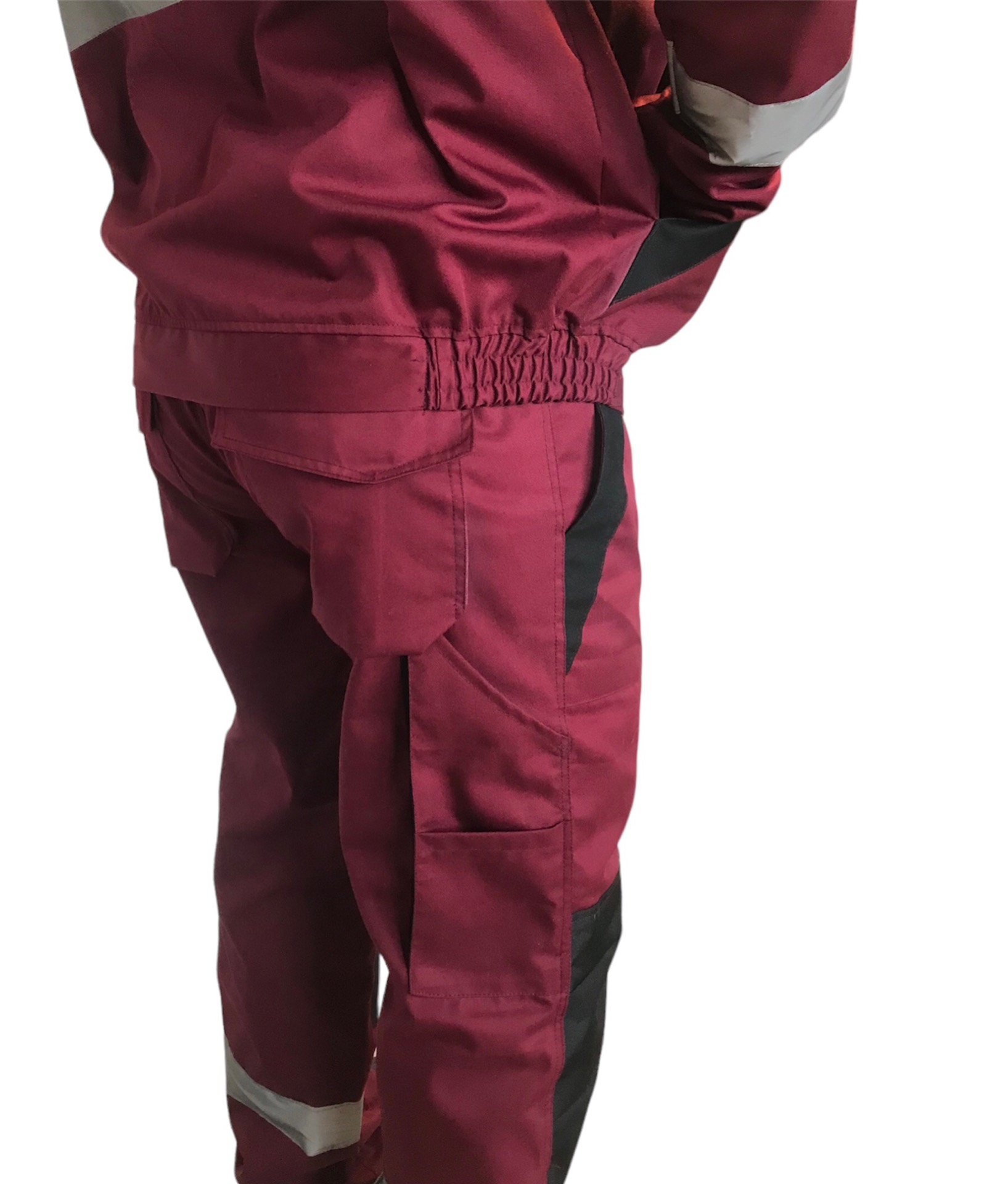 •Pantalonii dețin buzunare spațioase și clapete ( pentru o bună protecție a materialelor de lucru). In partea de jos, de jur împrejur este atașată banda reflectorizantă.